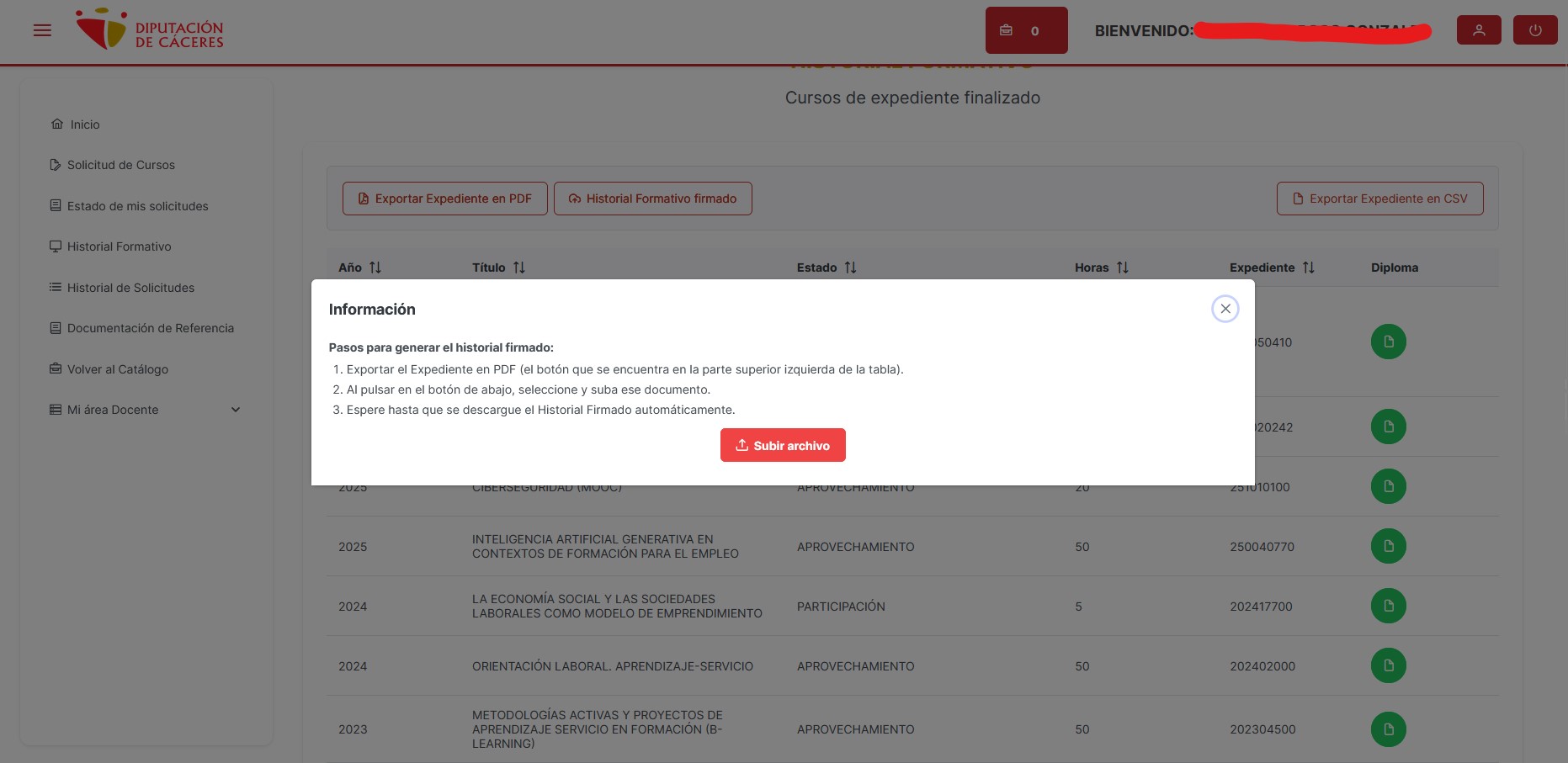 El Departamento de Formación de la Diputación Provincial de Cáceres informa de que ya está disponible una nueva funcionalidad en el Área Privada de alumnado que permite la descarga del Historial Formativo con Código Seguro de Verificación (CSV). Esta mejora refuerza la transparencia, la trazabilidad y la validez administrativa de la formación realizada, facilitando a…