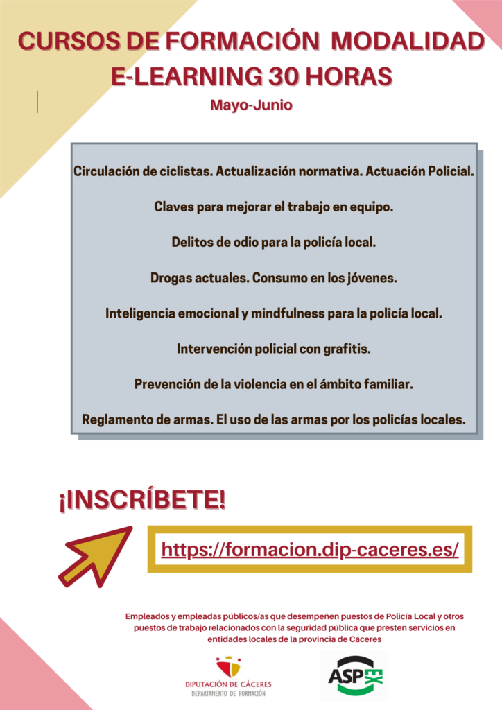 El Departamento de Formación de Diputación de Cáceres, dentro de su Plan de Formación 2022, pone en marcha varios cursos para la formación online de policía local de la provincia.