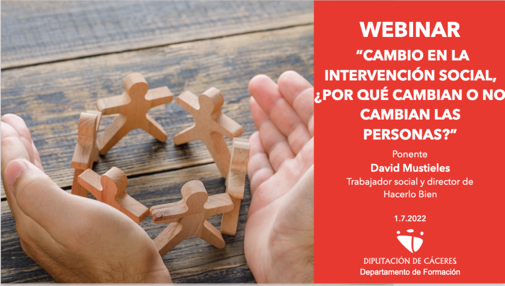 Desde Diputación de Cáceres se ve prioritario mantenerse cerca de las personas trabajadoras y ayudarlas a dotarse de los conocimientos y herramientas necesarias para desarrollar su puesto de trabajo en las mejores condiciones posibles, favoreciendo al mismo tiempo un mejor servicio público. Continuamos el nuevo ciclo de Webinars de 2022 con la siguiente acción dirigida especialmente a las personas trabajadoras en Servicios Sociales de la provincia: